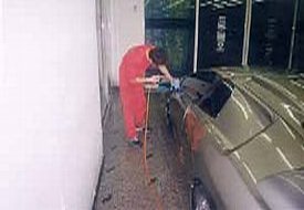 32.エアガン 最後の洗車になるため、隙間に入った水分を念入りに吹き飛ばします。